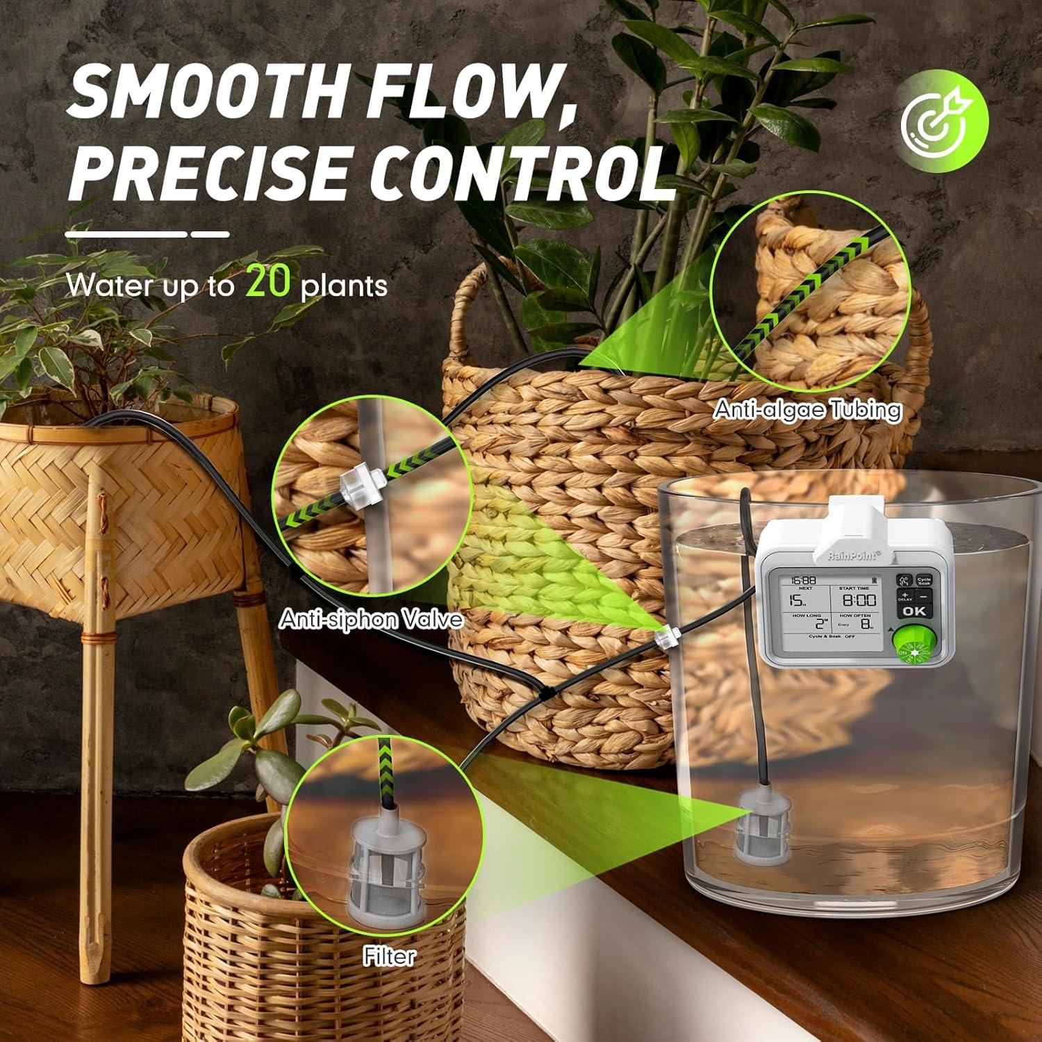 RAINPOINT Large Display Automatic Plant Waterer Indoor for Up to 20 Pot Plants,Cycle & Soak Watering Mode Vacation Self Watering Drip Irrigation System Device Kit for Balcony Office Patio Greenhouse